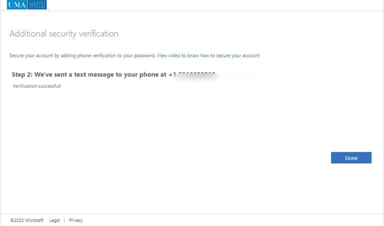 4. Once the verification is successful, click on Done. This may take a moment. You may be prompted to change your password.