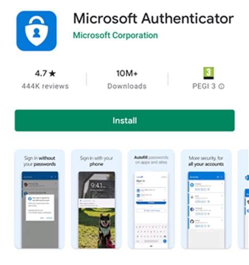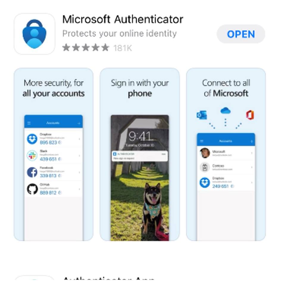 To get started, go to your app store and look for the free Microsoft Authenticator app. Here’s what the app icon will look like (the padlock icon) on the two main app stores.