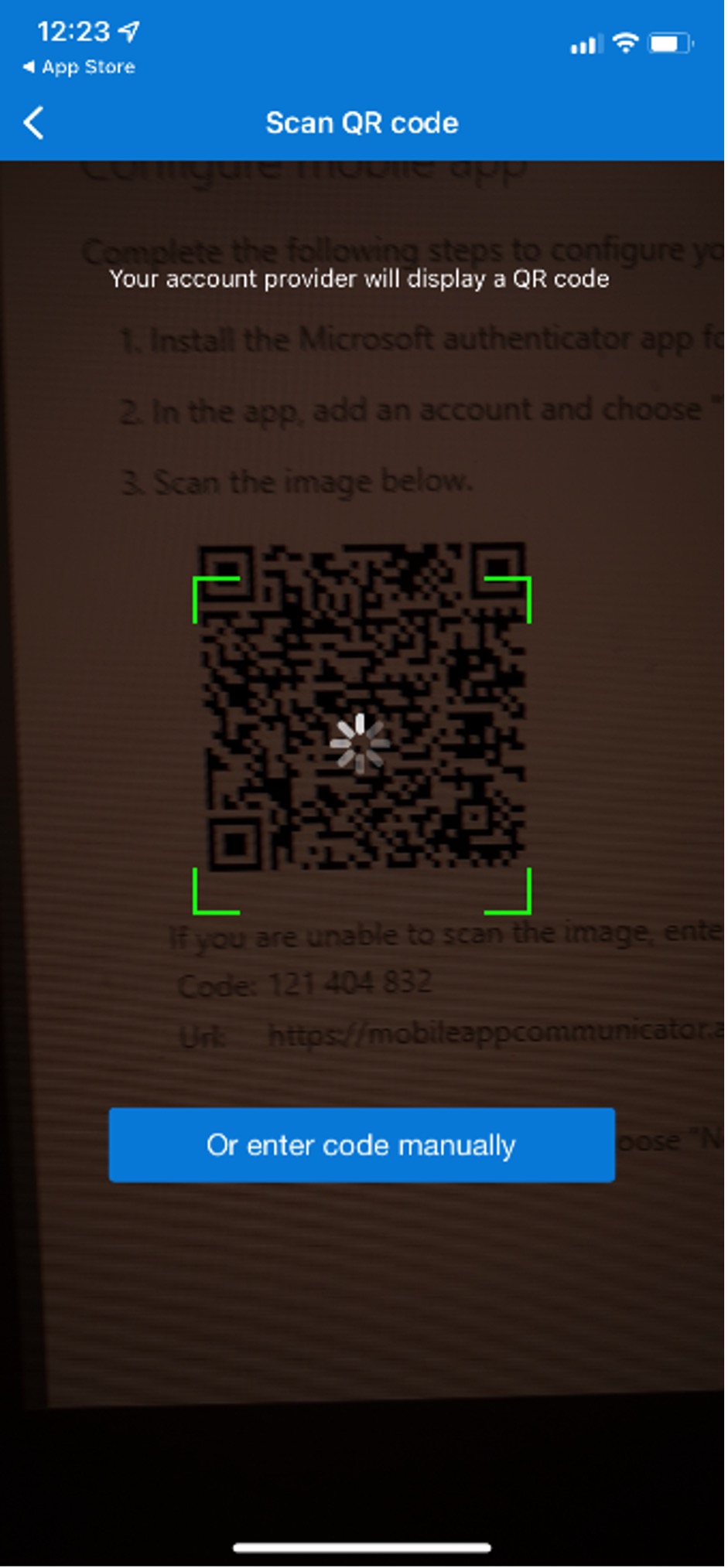 5. Use your device’s camera to scan the QR code from the “Configure mobile app” screen on computer, and then choose “Next.”